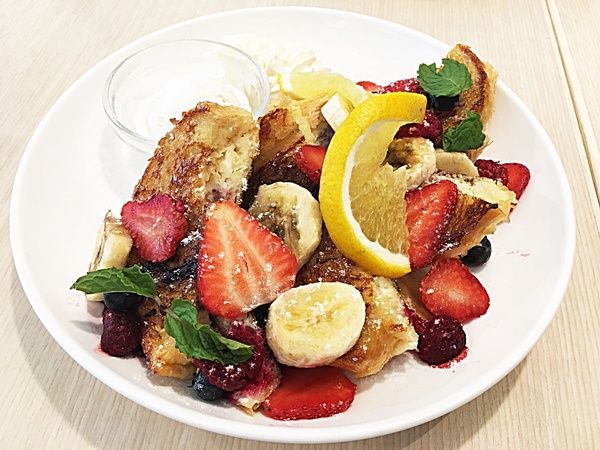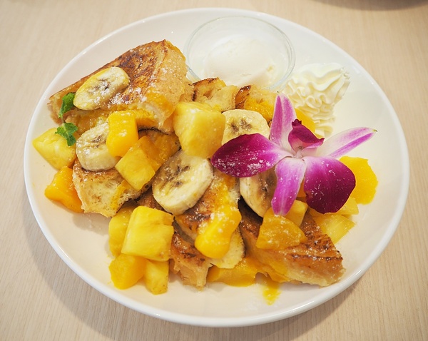 選用台灣熱帶水果為主軸,搭配夾著奶油內餡的法國吐司,華麗的視覺效果,倍增甜香口感。