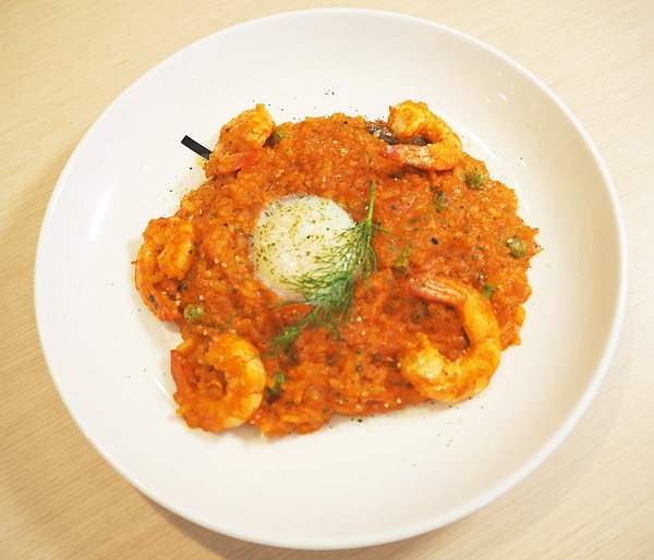 水波蛋鮮蝦番茄奶油燉飯/390元【晚餐限定】