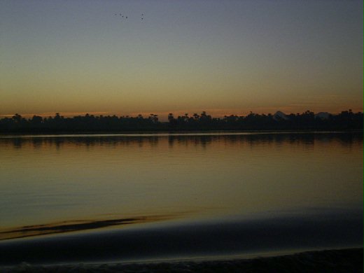清晨五點醒來。尼羅河上的遊輪,緩緩向前行駛。我睡在靠艙底的臥