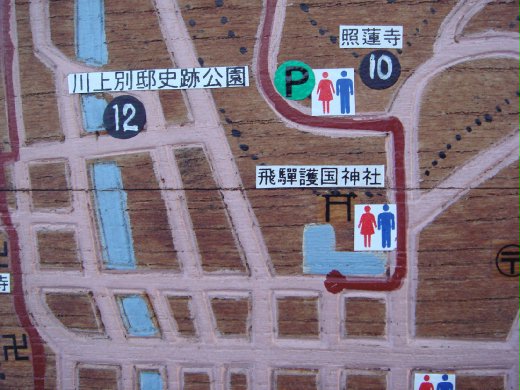 用古色古香的圖案,標示神社、朝市的去向