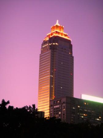 從新光大樓的高處遠眺,癡癡盯著夜燈迷離的一○一,由下而上,一