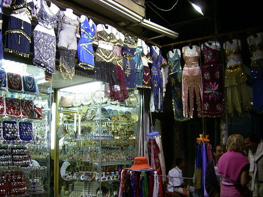 最吸引大家目光的,非肚皮舞服飾店莫屬,只見店面上方掛著一排排