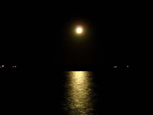 一望無際,初升的月光,在河面搖曳成黃暈暈的一片。