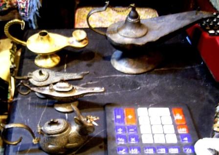 到了一家賣阿拉丁神燈造型銅壺的老店,兩人同時停下來。「進去逛