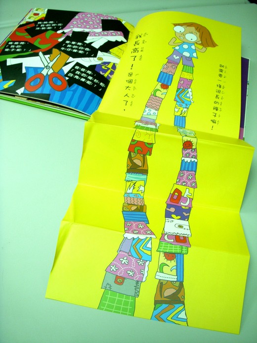 最後摺疊起來的長頁是一條很有創意的花花綠綠的褲子,更具創意。