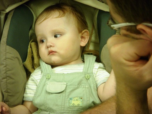 的溫馨畫面,一個外籍爸爸,看著他可愛到不行的混血兒寶貝,臉