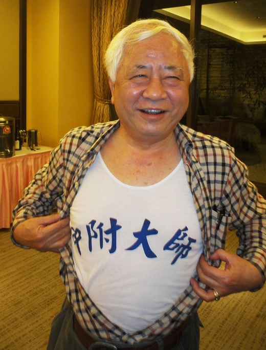 ,就脫下上衣,秀出附中汗衫,開始講古起來。