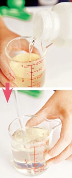 蒸餾出來的檸檬草水放涼後,溫度降至約20℃後加入50c.c.起泡劑攪拌均勻。(下圖2)