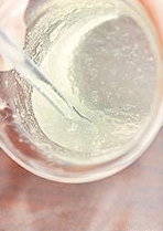 加入一匙半的凝膠,用攪拌棒均勻攪拌約5~10分鐘,最後呈現如圖的濃稠狀即可。(下圖1)