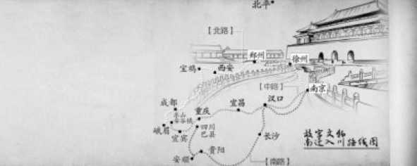 第一批運出的文物沿長江水路到達漢口(武漢附近),然後用火車運到長沙。幾個月內,長沙也危險了,這些箱子又經廣西運至貴州——不久,長沙原來存放這些箱子的圖書館就被一顆炸彈夷為平地。