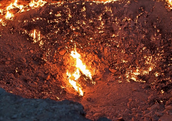 “地獄之門”是一個巨大的火焰坑,位於土庫曼斯坦境內偏遠地區,其正式名稱是"達爾瓦扎天然氣火山口"(The Darvaza Crater)。1971年發生開採事故後,蘇聯科學家曾點火焚燒多餘的天然氣,自此後這裡已經燃燒了40多年。