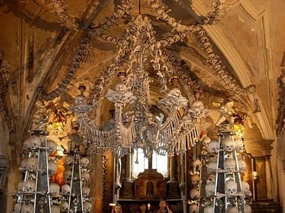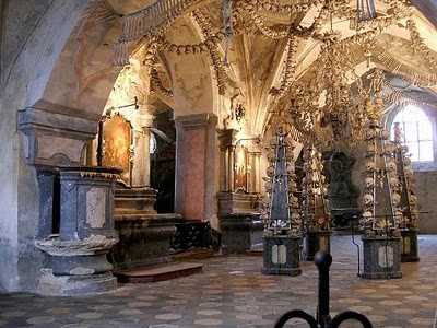 位於捷克布拉格以東約70公里的小鎮Kutna Hora,建於14世紀,其外表是看似十分普通的哥德式建築造型,但內部的裝飾卻都是用人骨做成的,因此這里與其說是教堂,倒不如說是"人骨教堂"。