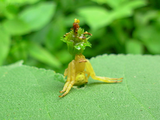 三角蟹蛛是不織網性蜘蛛,牠平常會守花待蟲或守葉待蟲,守花逮吸花蜜的昆蟲如蜂、蝴蝶,守葉逮躲到葉背或吃葉子的昆蟲。 史瑞克1 於 2007/12/06 16:01回覆 - 3樓. moodyblues2007/11/30 16:58蟹蛛好可愛!