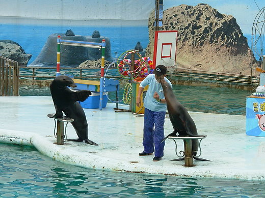 聰穎機伶的海獅可以和馴獸獅作出各種橋段,博觀眾哈哈大笑,諸如親吻吃醋、口臭昏倒,或是雙人跳恰恰,爆笑程度比墊檔的高空花式跳水更高一級。