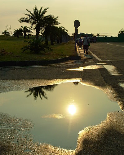 三個多月時間的流逝中,在淡水漁人碼頭留下了紀錄,漁會前的萊爾富便利商店及漁會餐廳紛紛關店,換上的媽祖神壇及碼頭電影博物館外景,士林豪大雞排卻進駐漁人碼頭棧道搶生意。人世間來來去去,變化比較不大的可能算是沙崙的環境吧,在卡玫基颱風來襲前,依舊進行著潮汐及日月交替。