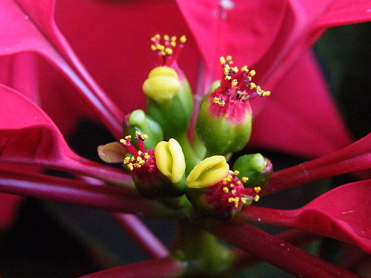 聖誕紅小花有如鴨子嘴 聒噪討論著 一年一度的農改場展示日又到了