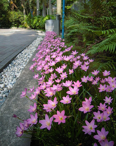 別稱 紅玉簾、風雨花、花韭、紅菖蒲、假番紅花等。屬於石蒜科,玉簾屬。多年生草本,高約15~