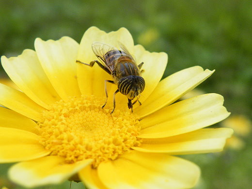魚寮段聚落的茼蒿花 (上面那隻是假裝蜜蜂的食蚜蠅)