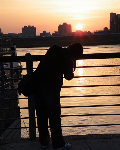 離6月21日夏至不到一個月,台北日落時刻遲至將近七點,傍晚六點下班後,還可以跑淡水河邊看夕陽。大稻埕是最常來的地方,因為最近最快速,但每次總是在短短不到一小時的時間內,從天地間擷取心中的剪影。直到日落餘暉,華燈初上,才甘心回家。