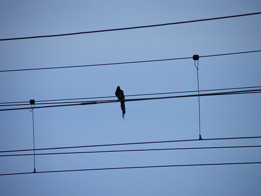 繼續前行北返,按照慣例,找尋國小停留,在逛過大里舊街後,停大里國小稍作休息,通常國小可供小朋友玩耍,此行不巧遇上連日雨後,雀榕果子掉滿地,發酵味道讓人不會久留,但就在離去前,突然發現鐵路高壓電線上有很多隻長尾鳥,直覺就是長尾山娘—台灣藍鵲,GGcrab期盼多時的鳥蹤不需到山裡尋,這裡 也有,應該是全台海邊可見台灣藍鵲的重要據點。來這裡看吧!!