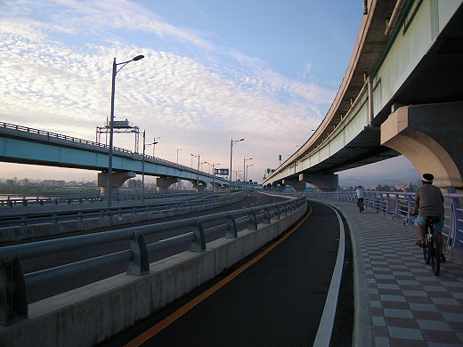 傍晚下班時間,新北環快用路人還是不多,原因可能是本來溪南溪北兩岸就沒有太多溝通,目前用路最多的就是汽機車利用大漢橋進出五股工業區。
