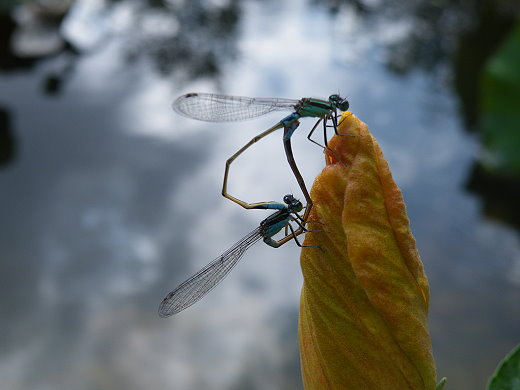 那豆娘 昰我太太發現的 我們前後最少拍了10幾張 志工都跑到池旁警戒 很怕我破壞花木 哈哈哈 上海園的荷花池中還有好幾對東亞細蟌