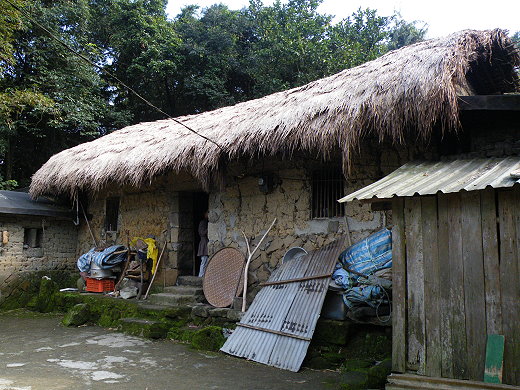 林家草厝,男女主人熱情而好客,在登山界出了名。山友路經此地時,必會被熱情招呼並泡茶款待。於是有山友在「林家草厝」四個字下方塗鴨註記「有茶可喝」。此行有看到山友在林家喝茶閒聊,而我未湊熱鬧,只是短暫停留攝影取景,並順便買了一包冷凍茶葉回家試喝,腳到眼到,這樣就夠了。