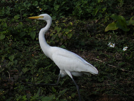 中白鷺(冬候鳥)踱步在一滴水紀念館外的草皮上