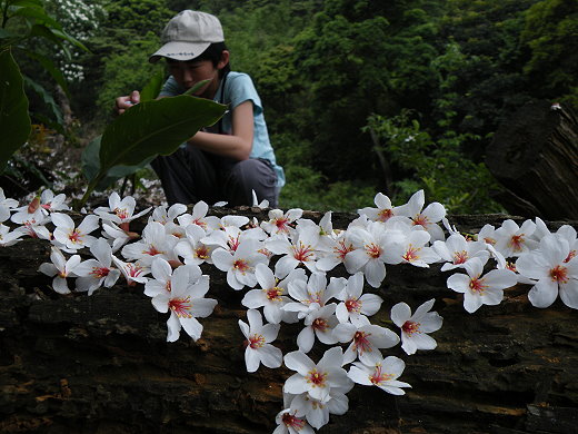 這週末小傢伙上林口複診,同時間也就先帶沒事的家人,在聚餐前逛逛附近貓尾崎的邱家茶園,上周在貓尾崎遇上桐花初開,這週再去時,就是遇上桐花落,茶園週邊的桐花樹幾乎都見白花開放,為一片翠綠山林,增添白色桐雪點綴,也顯示出油桐樹在茶園附近的位置。這裡的桐樹下有枯木、有青苔,大部份掉下的桐花,都是在樹上待到紅花心才掉落的雄花,可見這週的天氣算是相當不錯。