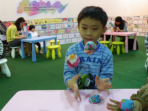 第一個點是南港展覽館「2011臺灣客家魅力嘉年華」,今年跟桐花祭連結,比較晚辦,心想去年元旦假期的活動熱鬧盛大,今年應該也不差,應該可以玩。南港展覽館的場地夠大,可以消磨半天時間,吃喝玩樂一番。館內場地規畫寬敞,只是販售攤位較多,附加活動比較少,沒有像去年美食競賽的活動,故第一天人潮不多,逛起來還算輕鬆,小史2號有童玩互動,也成了鏡頭下的麻豆,可惜很快就沒勁,趕緊轉換陣地。