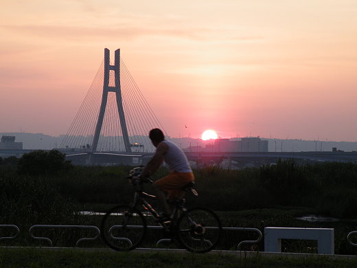 晝長夜短的盛夏七月,下班後到河邊走走逛逛,可以趕上日落時間18:40,淡水河邊很多人騎著單車,穿梭於河岸車道,也有人利用黃昏時刻散步運動。有霧靄時,拍落日;天色清亮時,則等待日落後,餘暉在夜幕低垂前的色彩揮灑,從橘紅到淺藍到錠青,一天的紛擾忙碌,也在天色變化中,漸漸平復。