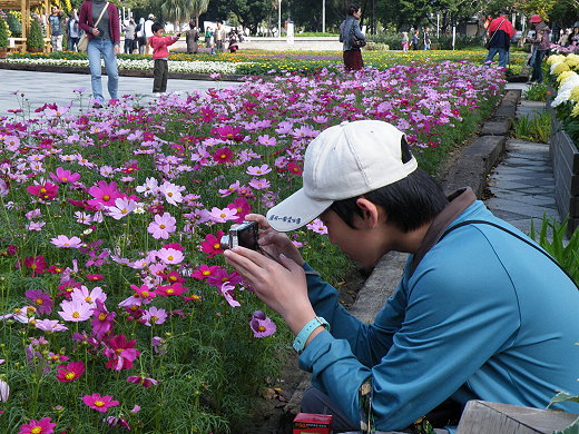 周日天氣放晴,下午見到很多人全家總動員,扶老攜幼到士林官邸參觀菊花展,今年以「以詩會友」為主題,展出各式各樣的菊花品種,大立菊再破去年紀錄,勇壯的單株完整開出1250朵(1291朵的那株陣亡啦),各色菊花將士林官邸妝點成美麗花海,許多遊客紛紛拿起相機拍下最美的照片,我呢,則是抽身立在一旁見證這人山人海的午后。