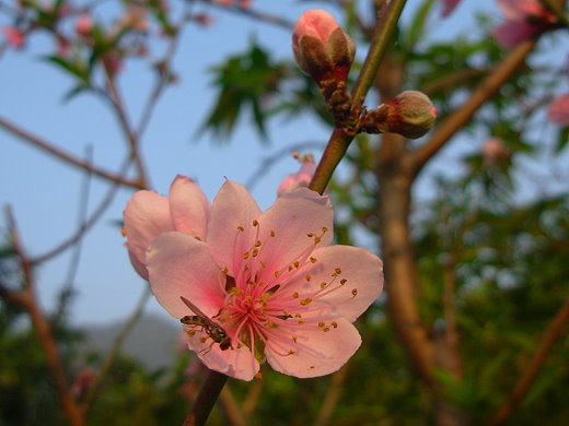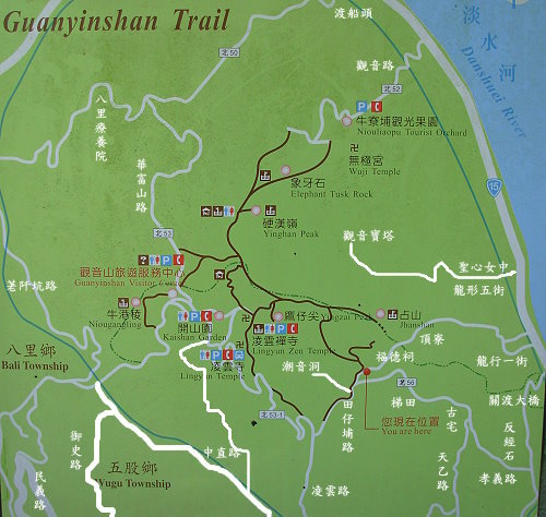 自恃地圖在心中,機車已維修好,遂大膽地朝山中前進,印象中可從聖心女中到田仔埔,經過營區及公墓,一路直上,沒想到最後僅到觀音寶塔,仰望硬漢嶺嘆氣,沒路了,不過還好有看到桃花柚花飄香。