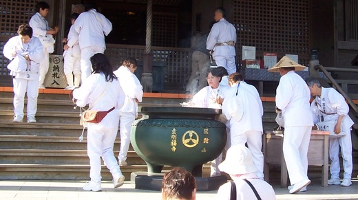 多年前在四國旅遊時,曾看到一群身著白衣白褲、頭戴白帽或斗笠、手持木杖的旅人【如上圖】, 導遊介紹時說他(她)們是弘法大師在四國88靈場的巡拜者,這是我對四國遍路的初印象。三年前台北崇善佛堂就開始籌劃並進行分年去巡拜高野山及四國的88寺靈場,在內人熱衷参與下、我却也未曾有參加的念頭。