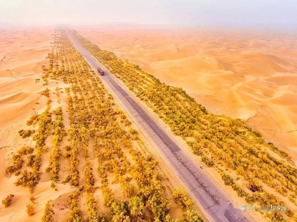 世界首條沙漠高等公路,兩旁綠化工程,現在已是自然生命力盎然的生態區