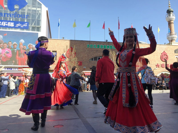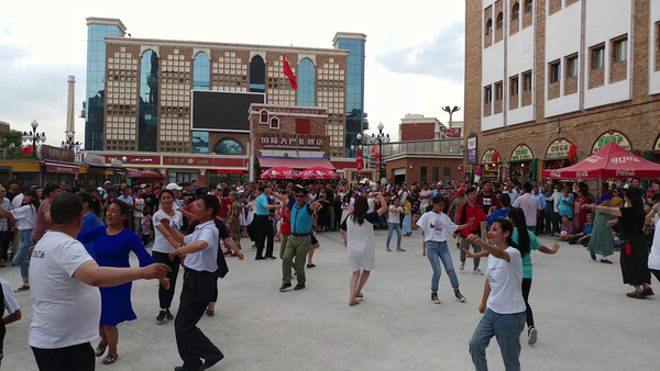 10/24日,告別南疆返回烏魯木齊逛國際大巴札。下午近五點時,見不少維族人聚集在巴札廣場舞台邊。我駐足其間,跟旁邊的一位中老年漢子打招呼,閒聊片刻,好奇問道,為何有這麼多人在此?他說,等會兒,這邊會開始跳舞,我也會下去跳。我問:可以在這裡看嗎?他笑說:當然,也歡迎你一起跳。接著說,我幾乎每天都會來跳,退休了,就該好好享受人生,這是我唯一的目標。