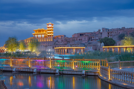喀什古城夜景(上圖)與公園夜景(下圖)