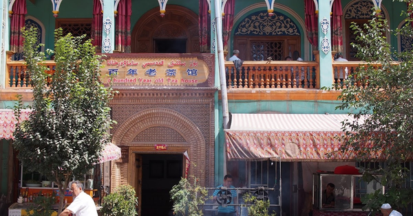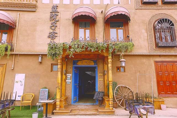 喀什百年老茶館外貌(上圖)與室內一景(中圖--AI提供);市區民宿(下圖)