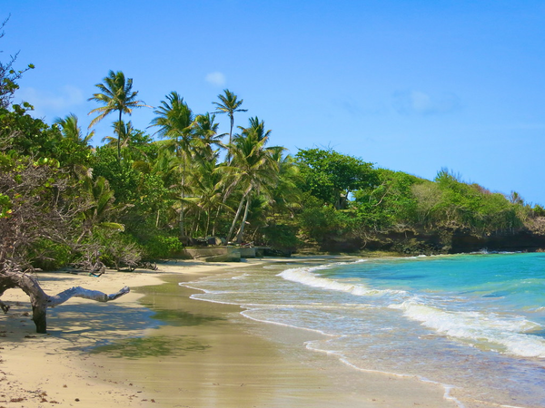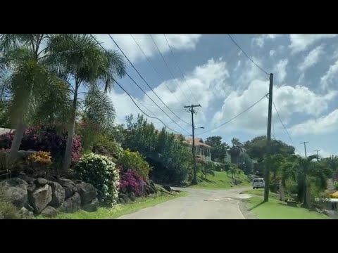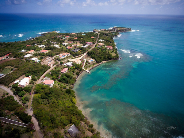 海岬唯一道路、平靜無波的加勒比海、海邊住屋(由上至下)