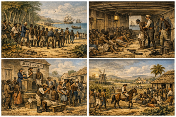 奴隸貿易的流程:1.捕捉與販運:非洲內部的戰爭或交易中,俘虜被販賣給歐洲人。2.中途運送(Middle Passage):奴隸被擠在船艙中,橫渡大西洋,死亡率高達15%。3.拍賣與勞動:抵達美洲後,奴隸被拍賣至種植園、礦場或家庭中,從事高強度勞動。 - 1樓. 旭日初昇2026/03/14 15:07--