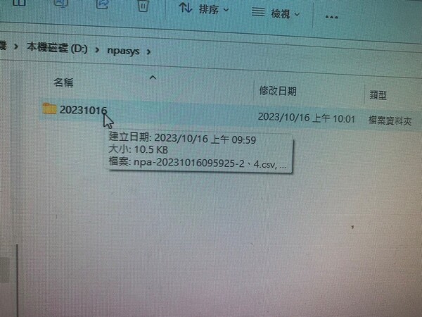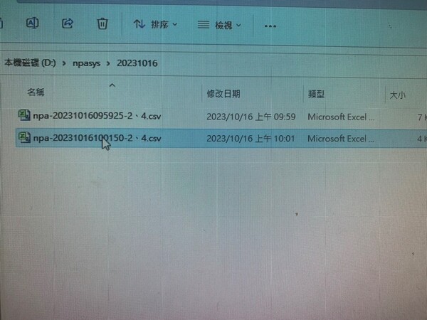 PS:目前電腦沒有D槽,執行NpaSys24.exe, CSV檔無法產生成功。