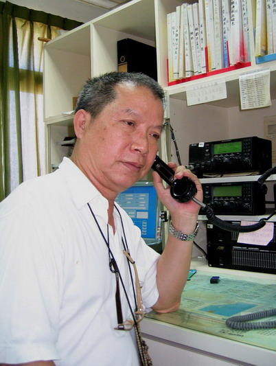 本班陳家棟同學,在班務(7) 屏東空小愛班同學通訊第五期中,曾提到他現仍在職上班,是東港漁業通訊電台的台長,多年來,處理海上救難事件無數,救了不少的人,令人敬佩不已。並且有聯合報記者許正雄先生專文「老芋仔學台語 廣播守護漁民」介紹報導。現將該篇報導轉載於下,讓大家對陳同學辛苦工作的心路歷程,有一個詳盡的了解。