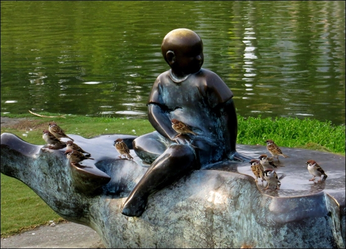 有這麼多小麻雀陪我玩兒,真熱鬧。(高美館)