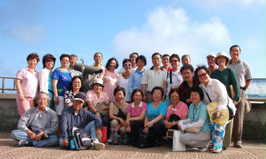 第二天的活動是參觀海洋生物博物館,看看台灣水域的生物,各類珊瑚、鯨魚及可愛的企鵝,並瞭解其棲息與生態。真的是有活到老、看到老、學到老的感覺。隨後到了鵝鑾鼻燈塔前,燈塔是最佳背景又有名氣,大家猛拍照,不在此處下手又在何處?傻鳥,是你說的!附近的草原區,綠草如茵,就像電影片『真善美』一樣,那個家庭老師帶著七個小男生小女生,在那青青草原上,又跳又蹦地唱那首好好聽的歌:『多、瑞、米』。這是在高中時代看過的電影,美好的畫面,永生難忘。凱明同學提議到台灣地理的最南端去看一看,沒人持反對意見,真是一言堂。於是就坐巴士前往,想看個究竟長什麼樣子。到達後,又走過一段叢林,才到達海邊,看見了一座地標及觀景台。同學們或倚欄杆站,或坐著,迎著巴士海峽涼風,看著夕陽西下,但是西邊有小灌木林,未能看到日落台灣海峽的壯觀景色,確實有點遺憾。但是釣得滿天映紅的晚霞及躍金般的海水,也算是不錯的補償。還好本班沒有胸懷大志的同學在場,否則不知是觸景生情還是傷情,悲壯而高亢地唱起滿江紅:『怒髮衝冠憑欄處----』,豈不大煞風景。此情此景,我們一起來唱:『釣得晚霞滿漁船』比較愜意點,更有那種味道。人之一生有幾次這樣認真的去看夕陽,有幾次你想過嗎?請告訴我。 “夕陽無限好只是近黃昏”,這是我老爸在退役前,對還要想提拔他的長官所回答的話。總之,黃昏還是很艷麗的,如何善用這黃昏,每個人想法、做法未必一樣,我們正走在人生黃昏的日子裡,勸君用智慧去善用它。