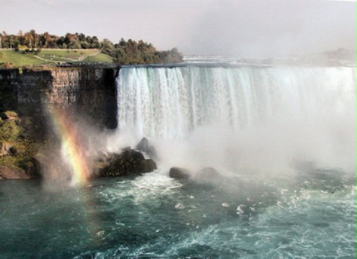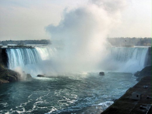 話説回來,這是我第一次看到尼加拉瓜瀑布(在銀幕上)。當時我幼稚的心靈,對片中男女兩性之間懵懵懂懂,倒是氣勢磅礴的尼加拉瓜瀑布讓我心儀嚮往。鬼使神差的,我兩次就讀的學校都離尼加拉瓜瀑布不遠,只有幾小時的車程,因此把“她”看了個透透。二十多年前第一次搭乘“霧之少女”,新鮮得很,遊船迫近馬蹄瀑布後,幾乎就在正下方盤桓,水珠子千軍萬馬般的由上面劈頭劈臉的打下來,比坐雲霄飛車還刺激。最近一次陪家母與姐姐們同遊,也不知是我膽子磨粗了,還是船公司有保持安全距離的新政策,似乎沒有那麽讓人心驚膽顫地接近了。