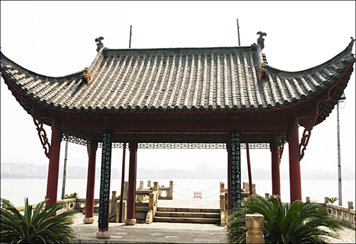 飛機直飛武漢機場,然後轉乘巴士,首站是九江。先到地標性建築〜煙水亭,傳說是三國周瑜當年操練水軍的地方,在㸃將台上可想見他雄姿英發、劍氣摩天的氣概。