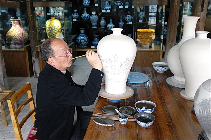 離開廬山順道參觀景德鎮,中國的瓷都,聞名海內外,古窯瓷廠還保存了古代製瓷工藝,特別是陶瓷民俗博物館,展示了完整的古陶瓷、古建築、古工藝。在工作坊從原料高嶺土到拉坯、上釉、彩繪、燒窯等生產過程可一覽無遺,同時各式的精美瓷器也讓你目不暇給,流連忘返。