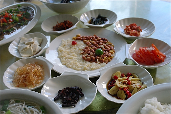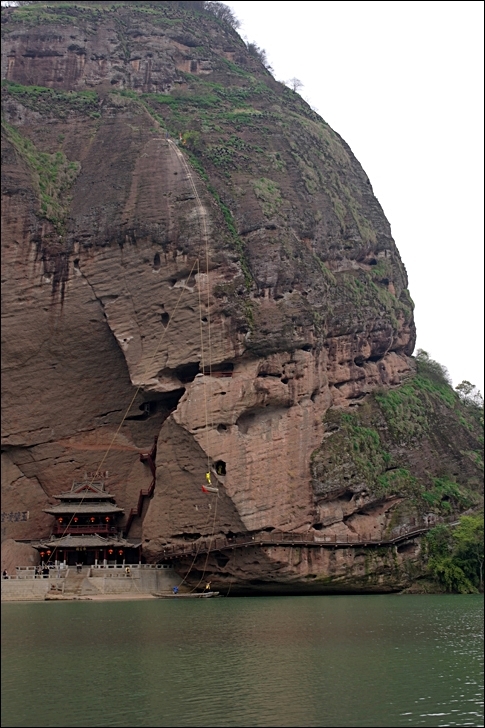 龍虎山位在鷹潭市郊,因東漢張道陵在此煉丹得名,是道教的發源地—祖庭,風景奇麗,瀘溪河傍山,溪流平緩清澈,乘遊船溯溪可飽覽兩岸山光水色;龍虎山三絶是:碧水、丹山(丹霞地貌岩壁赭紅色)和規模龐大的崖墓群。我們先後觀賞了景區安排的水上漁家鸕鷀捕魚秀、模擬古越人的懸棺崖葬表演,非常精彩;在這用餐吃的是天師八卦宴,擺盤考究,可說別有風味。瀘溪河畔有一長壽村,村中蚊蟲不生,居民多享高齡,令人嚮往,惜未及訪。