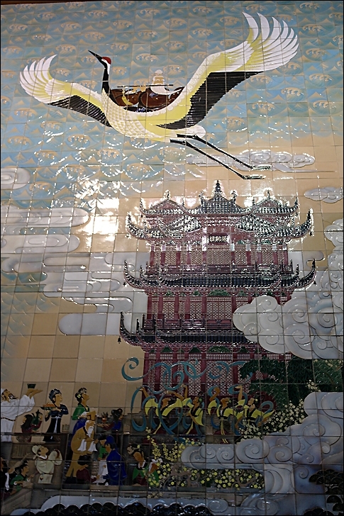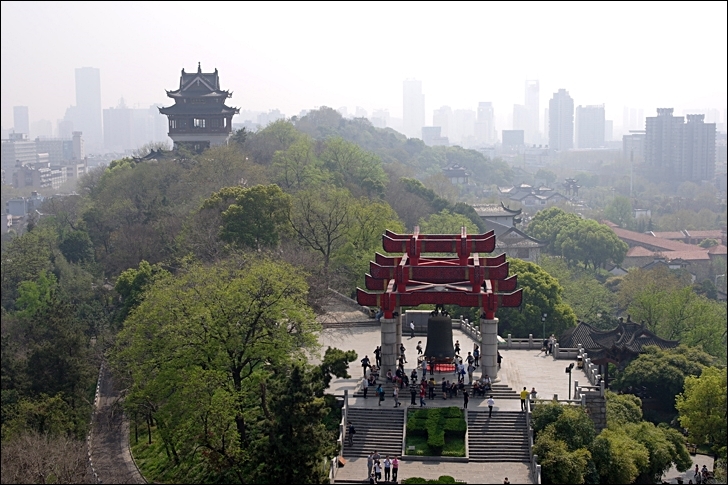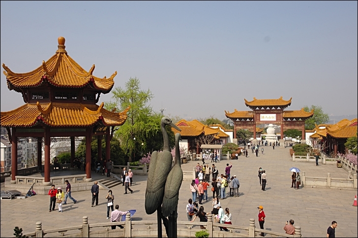 最後一天在武漢參觀了蜚聲海內外的古蹟—黃鶴樓(原樓毀於戰火,歷朝屢有修建,此樓為民初所建),號稱天下江山第一樓;拜詩教之功,崔顥的黃鶴樓連詩仙李白也甘拜下風,可謂聲名遠播。它瀕長江之濱,居蛇山之首,登樓遠眺,極目千里。金碧輝煌的琉璃瓦,大紅廊柱,氣勢宏偉;樓內陳列歷代建築模型,有壁畫描述仙人騎鶴去的古老傳說,世事滄桑變化,發人深省。