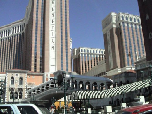 感謝「孝」班旅居華盛頓的tjulianchu同學解說;原來澳門威尼斯人酒店全係依照美國拉斯維加斯的威尼斯人度假村酒店(The Venetian Resort Hotel Casino)而建。都有兩座大樓及一座塔樓,模仿威尼斯16世紀的文藝復興式風格,也充分展現了「威尼斯」水都風光。酒店範圍內到處都是拱橋、小運河及石板路。旅客可乘坐威尼斯傳統狹長的小船,飽覽沿岸風光,一邊享受船伕的美妙歌喉。